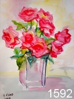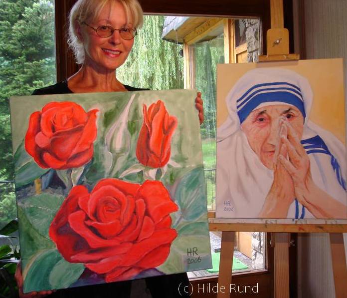Hilde Rund mit ihren Gemaelden Mutter Teresa & Rote Rosen