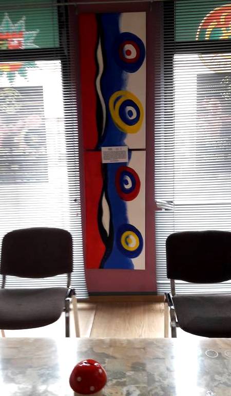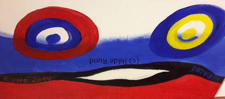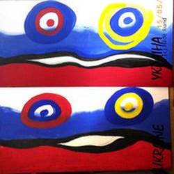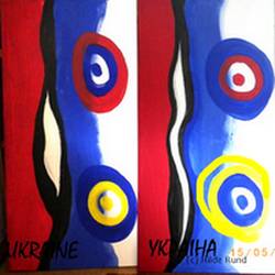 Das Doppelbild Ukrainekonflikt (Acryl 2x 100x50) steht im Gegensatz zu allen anderen Werken von Hilde Rund