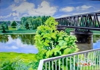 Leihe an Standesamt Roßlau Rosselmündung Elbe “Am Schifferstieg” in Roßlau mit Eisenbahnbrücke (Oel 100 x 70)